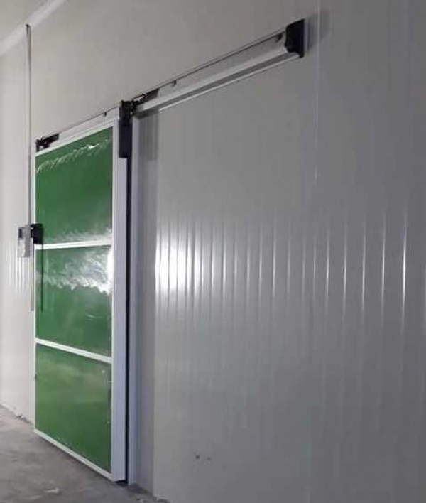 Porte coulissante pour la température négative avec la feuille 90 millimètres, isolée avec la densité injectée par polyuréthane 38 / 40kg / mc. Revêtement standard en tôle plastique blanche ou, sur demande, avec revêtement en acier inoxydable ou en acier inoxydable avec des faces en polyester. Le cadre en PVC de la porte "900PG" peut être équipé d'un cadre en PVC "COP" pour montage sur panneau. Le passage de rail est équipé des baies en caoutchouc sur le cadre et de la structure d'acier inoxydable sur la feuille. Les interruptions du pont thermique sont réalisées avec des profilés en PVC placés sous le joint et sur le côté du cadre à l'intérieur de la chambre. Poignée int / ext. Glissières supérieures et arrière en aluminium anodisé